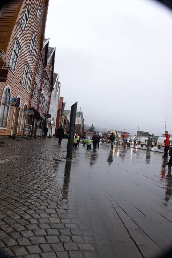 Fra stormfloen i Bergen 12. januar 2017. Med økt havnivå vil ekstremhendelser bli mer omfattende, ødeleggende, og opptre relativt oftere. Dette blir dyrt å håndtere, viser ny studie. (Foto: Kerim Nisancioglu, Bjerknessenteret)