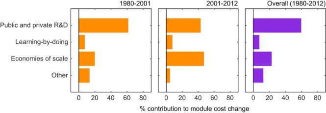 Mange har tidligere vist at det er en sammenheng mellom akkumulert installert produksjon og kostnadsreduksjoner. For solceller har man funnet at kostnaden reduseres med ca 20 prosent ved hver dobling av installert kapasitet. Men siden installasjon av produksjonskapasitet og forskning skjer på samme tid vil ikke den metoden hjelpe oss til å identifisere hva som er årsaken til kostnadsreduksjonen. Det vil bare vise oss at det er en sammenheng, en korrelasjon, mellom installert kapasitet og kostnadsreduksjoner. MIT-forskerne har i stedet utviklet en metode for å finne ut hva som er årsaken.Metoden deres går ut på å se konkret på hvordan kostnadene har blitt redusert i produksjonsprosessen. Det har for eksempel vært gjennom forbedret effektivitet, resirkulering av materialer som blir brukt under produksjonen, bedre moduldesign, lavere kostnader for å produsere silisium og stordriftsfordeler knyttet til større fabrikker, for å nevne noe. Disse reduksjonene kalles lavnivå-mekanismer.