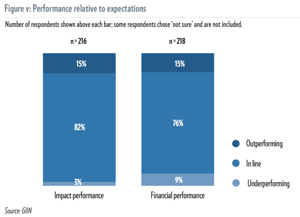 Ifølge en undersøkelse utført av forskere ved Wharton School, universitetet i Pennsylvania, kunne 170 undersøkte fond vise til en gjennomsnittlig 12,9 prosent finansiell avkastning på sine impact-investeringer. Det viser at det er fullt mulig å forene fremragende finansiell fondsforvaltning med Impact Investing.