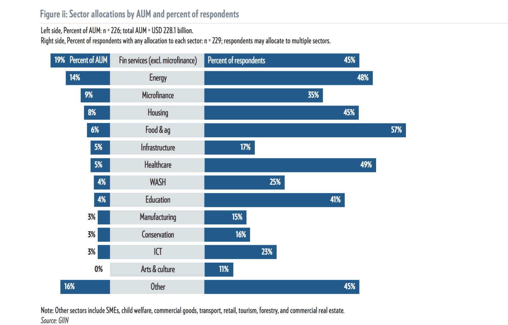 Opprinnelig handlet Impact Investing for det meste om investeringenes sosiale ringvirkninger. Spesielt etter Paris-avtalen er det kommet flere fond med spesiell fokus på fornybar energi og energieffektivisering. I årene fremover vil det vokse frem en rekke spesialiserte fond som dekker de fleste av FNs bærekraftsmål, som klimatilpasning, vannforsyning, klimasmart matproduksjon og undervisning. GIIN-rapporten gir omfattende innsikt i hvordan de toneangivende 229 fondene ser på sine impact-investeringer, og hva de tenker om fremtidens marked.