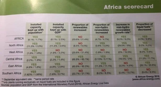 According to the same publication, the proportion of renewable energy in the generation mix has declined so far in 2018 in all regions except Central Africa. Despite a slight increase in the overall share of wind and solar in three of the five regions, the slow growth in hydro combined with sustained growth in all forms of hydrocarbons resulted in an overall increase in the share of plants running on hydrocarbons and a corresponding reduction in the shares of renewables.