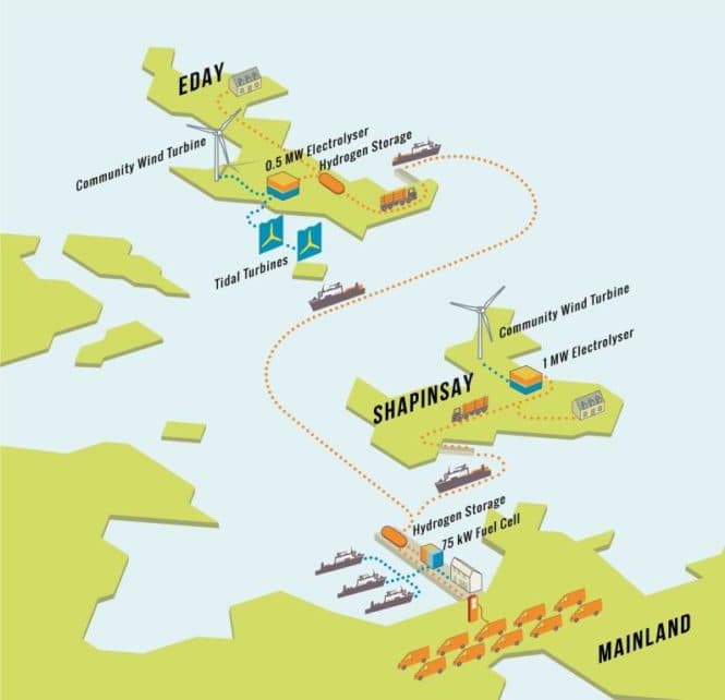 Hydrogen-kjede på Orknøyene. (Illustrasjon: FCH)