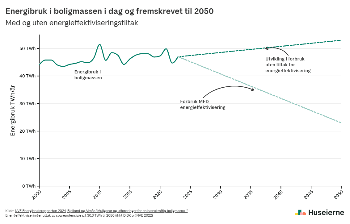 De viser i artikkelen til at strømforbruket i boligmassen har vært forholdsvis jevnt de siste årene, og kommer til å være forholdsvis jevnt i årene som kommer selv om det ikke gjøres energieffektivisering.