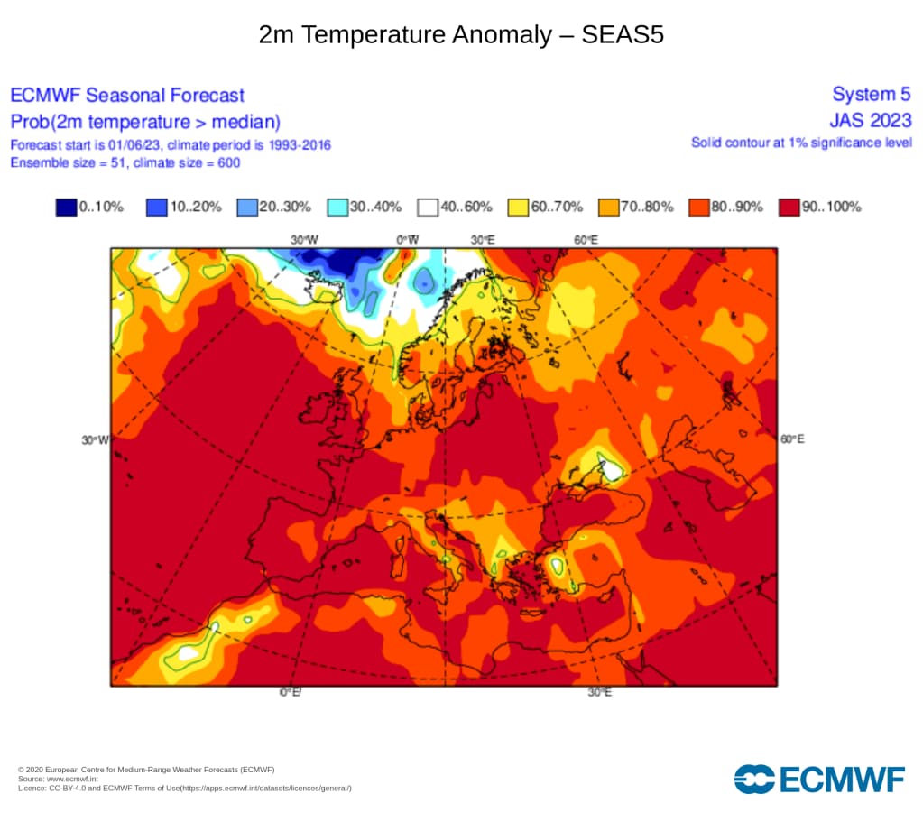 Sesongvarslene for resten av sommeren er klare, og her er en oppdatering for juli. Som alltid oppfordrer jeg til å se på siden vår om hvordan vi lager varsler. Der står det blant annet at sesongvarsler produseres en gang i måneden, og vi får som regel tilgang til disse rundt 12. i hver måned. Denne gangen bruker jeg et kombinert varsel som er produsert av EU sin Copernicus-tjeneste. Her er en lenke til alle varslene.