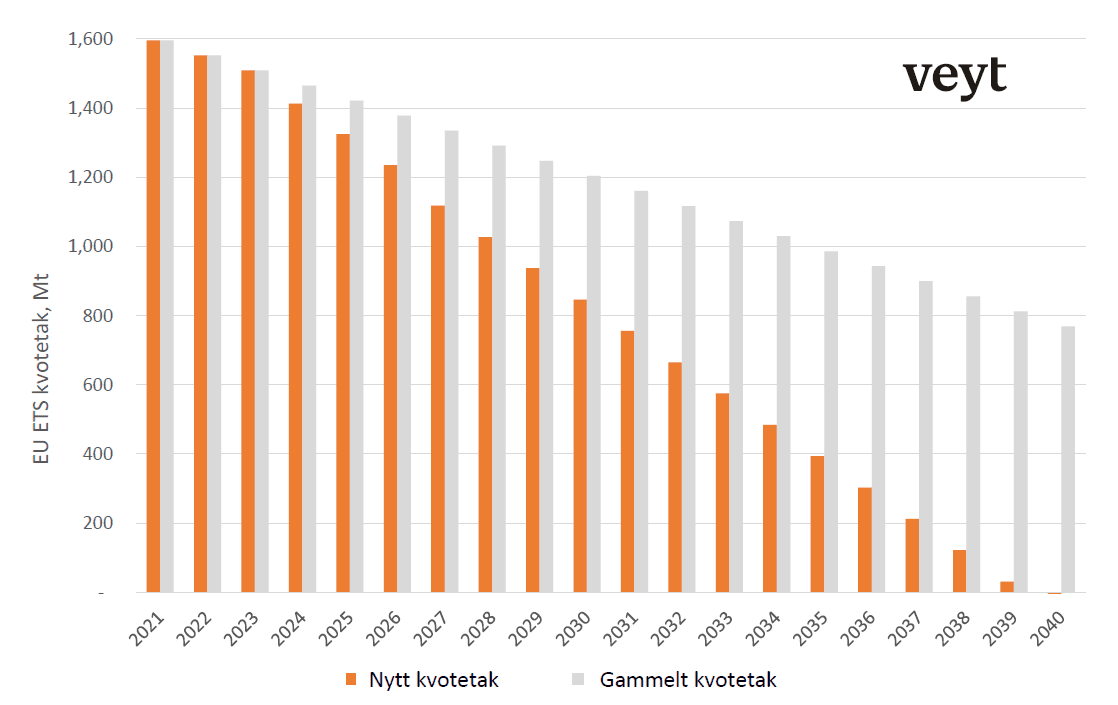 Kvotetaket senkes raskere fram mot 2030 og går med lovendringene som nå er i kraft, mot null i 2040. Med andre ord, rommet for utslipp fra energiproduksjon, kraftkrevende industri, innenriks luftfart og skipsfart, lukker seg raskt.