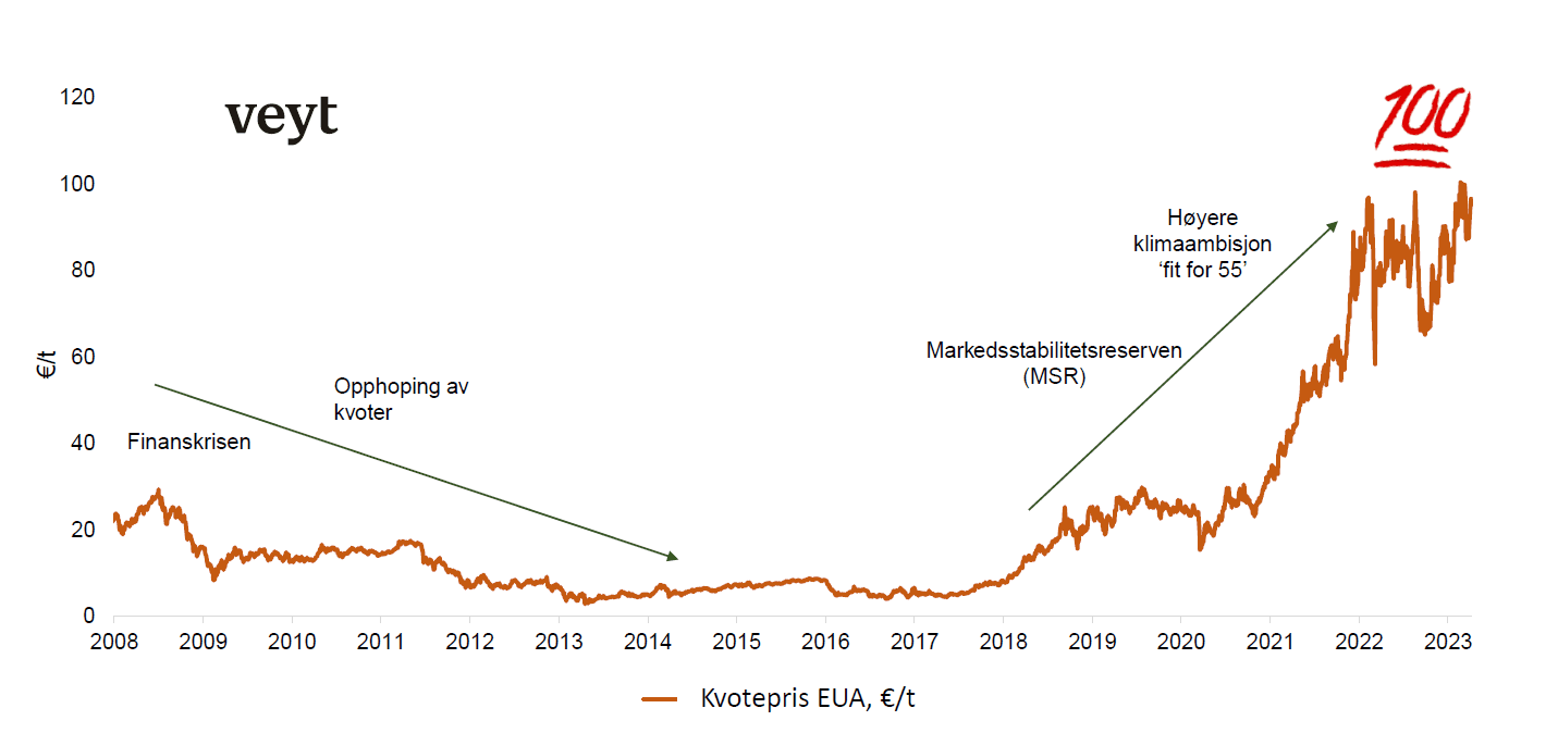 Og noe ble gjort. Etter år med politiske forhandlinger ble markedsstabilitetsreserven (Market Stability Reserve, MSR) innført fra 2019 som en integrert del av EUs kvotesystem. Dette endret dynamikken i markedet og er et vannskille i EUs klimapolitikk.