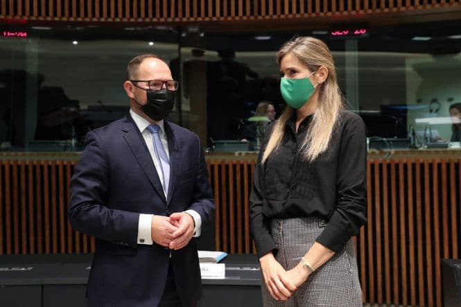 Fra venstre Belgias energiminister Tinne van der Straeten og EUs energikommissær Kadri Simson på EUs energiministermøte.