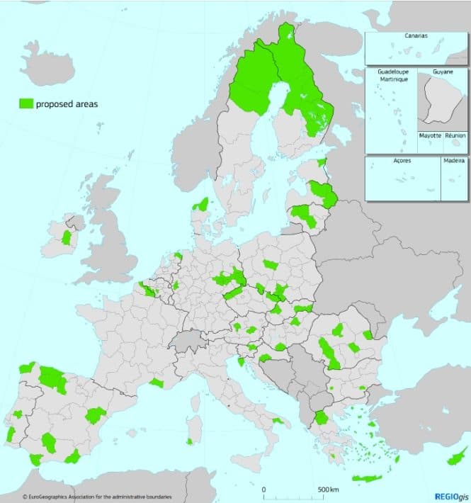Europakommisjonen har lagt frem listen over regioner som vil bli