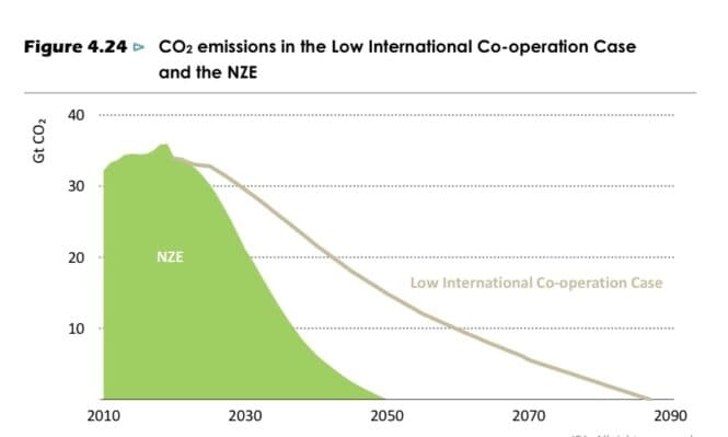 Det internasjonale energibyrået (IEA) presenterer i sin nye rapport et scenario for hvordan verden kan nå netto nullutslipp av CO₂ fra energirelatert virksomhet innen 2050. Dette er et scenario for å begrense global oppvarming til 1,5 grader, i tråd med Paris-avtalens mål.