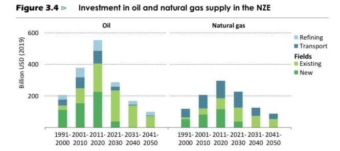 Oppstrøms olje- og gassinvesteringer vil holde seg på 2020-nivået frem til 2030. Deretter halveres investeringsnivået til 170 milliarder dollar årlig.
