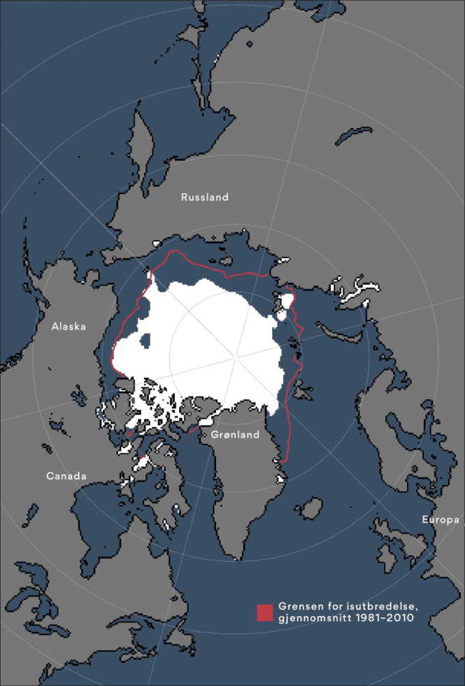 Normalnivået her er definert som gjennomsnittet for perioden 1979–1988. 1979 var året man begynte med systematiske satellittmålinger. Det er mindre nøyaktige målinger for perioden før dette, men FNs klimapanel sier gjennomsnittlig årlig isutbredelse i perioden 2011–2020 var på det laveste nivået siden minst 1850, og at sommerisutbredelsen i Arktis antakelig er lavere enn den har vært på minst 1000 år.