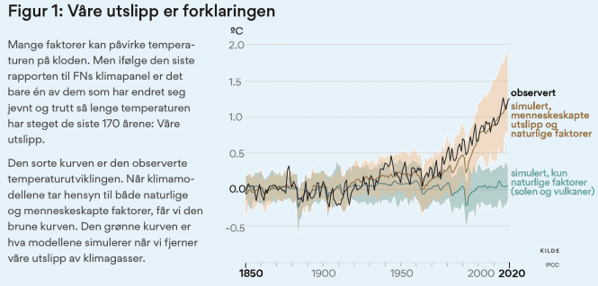 Klimapanelets siste rapport slår også klart fast at det er sammenheng mellom menneskeskapte utslipp og den globale oppvarmingen. Det betyr også at dersom vi klarer å stanse utslippene, vil oppvarmingen etter hvert stoppe opp. Klarer vi å oppnå negative utslipp, slik at CO2-konsentrasjonen synker, kan temperaturutviklingen snu. Det er imidlertid foreløpig lite som tyder på at vi klarer det på kort sikt.