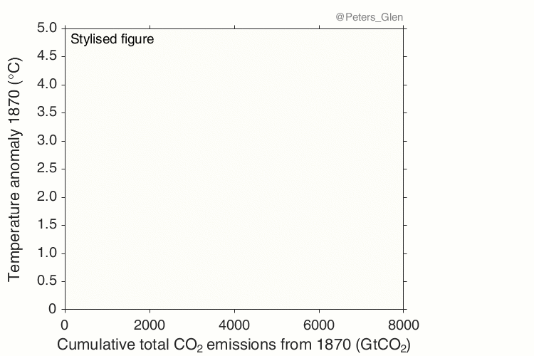 The carbon budget originates out of the near-linear relationship between the temperature anomaly and cumulative carbon dioxide emissions. It is a very powerful concept, hopefully expressed in the following stylised animation: