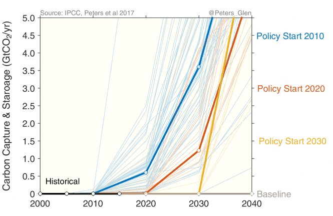 If carbon capture and storage is not available at such scales, the costs of climate mitigation become higher, there is a risk society will place too little emphasis on near-term mitigation, and there needs to be a much more disruptive decline in fossil fuel consumption.