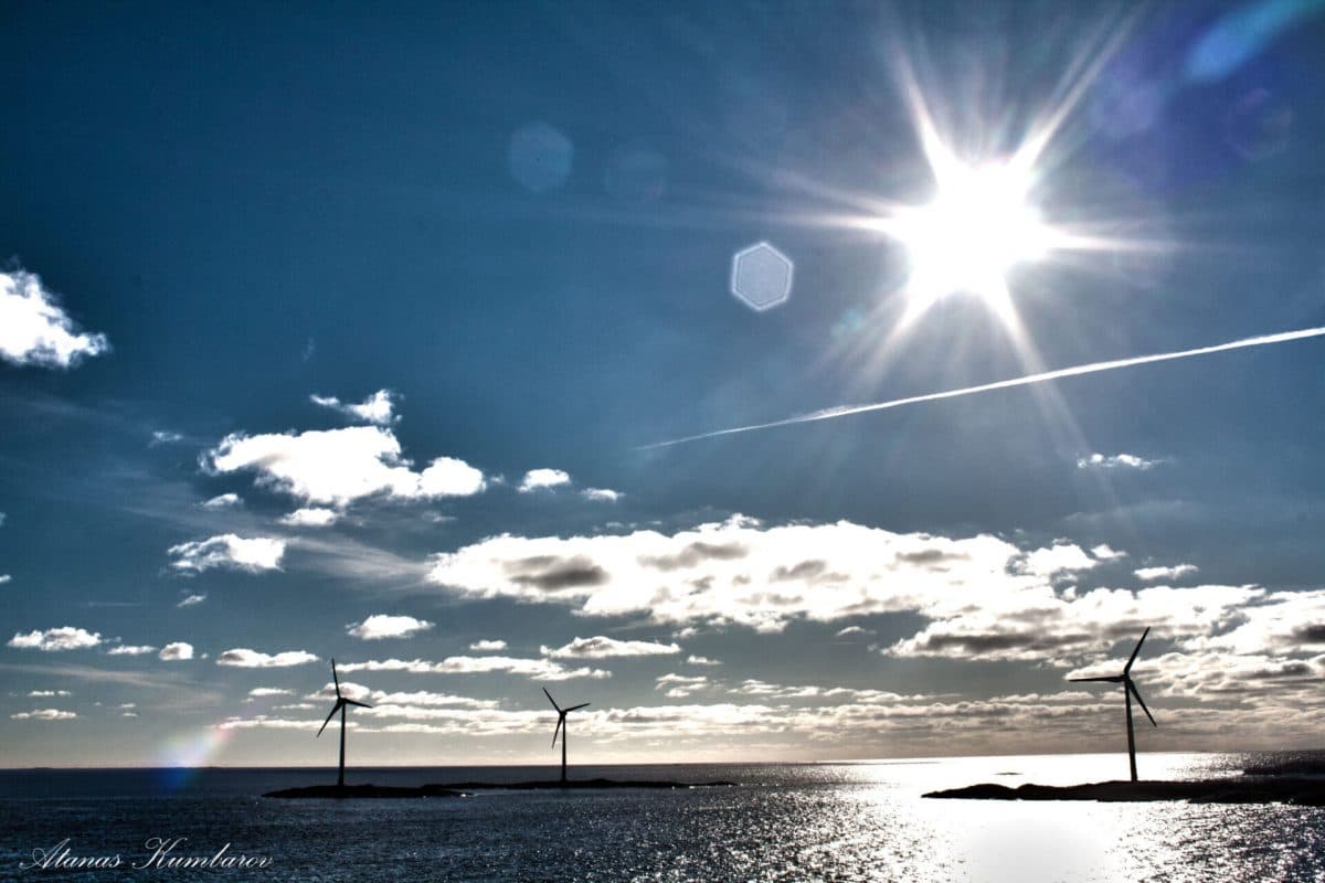Wind turbines in the Åland Archipelago near Mariehamn.