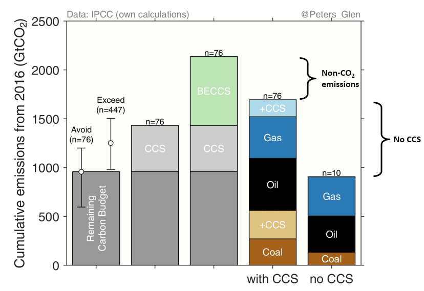 As I have argued before, the scenarios assessed by the IPCC use large levels of carbon capture and storage. Since it is such a critical component of many emission scenarios, I want to focus on that a little more here.