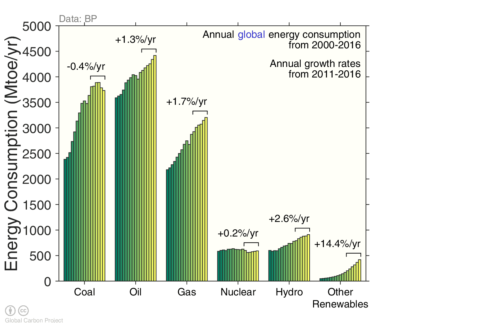 The decline in coal, begs the question. If coal consumption has gone down globally, and it is the most important fossil fuel, then why are emissions only flat globally?