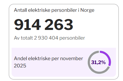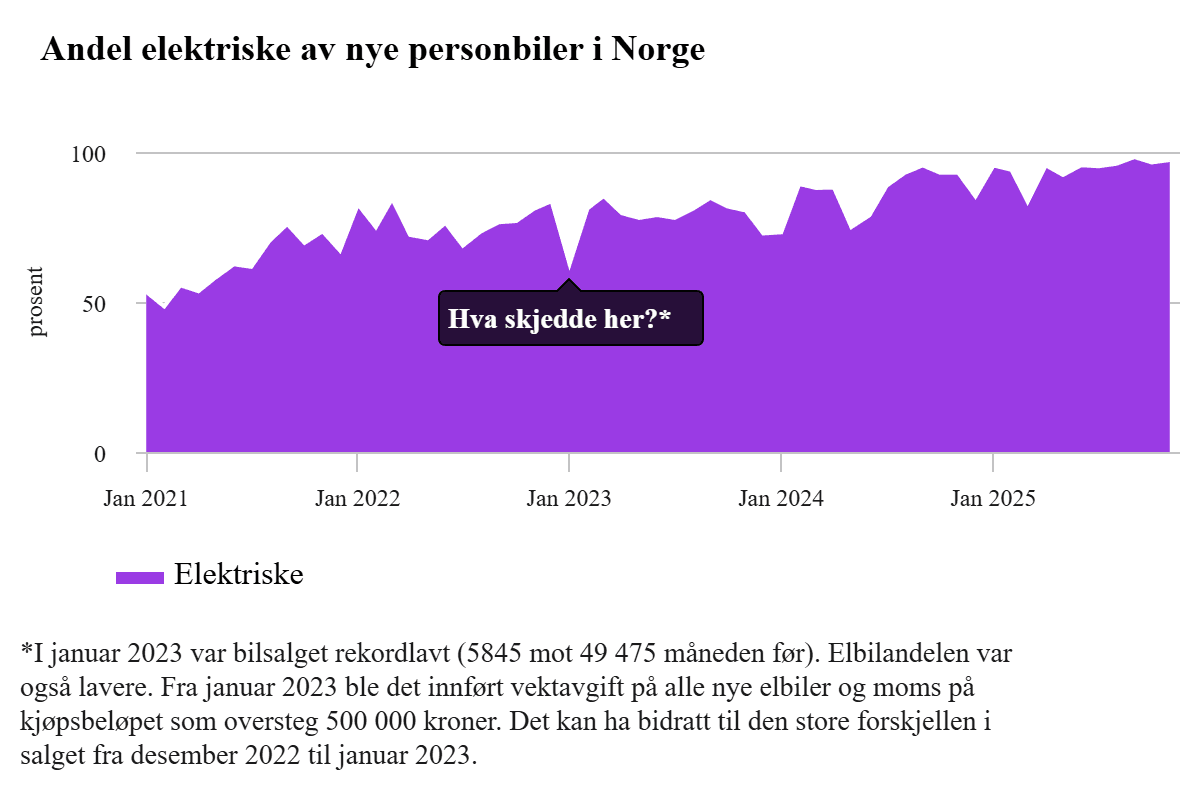 Sjette måned på rad med over 95 prosent elbiler