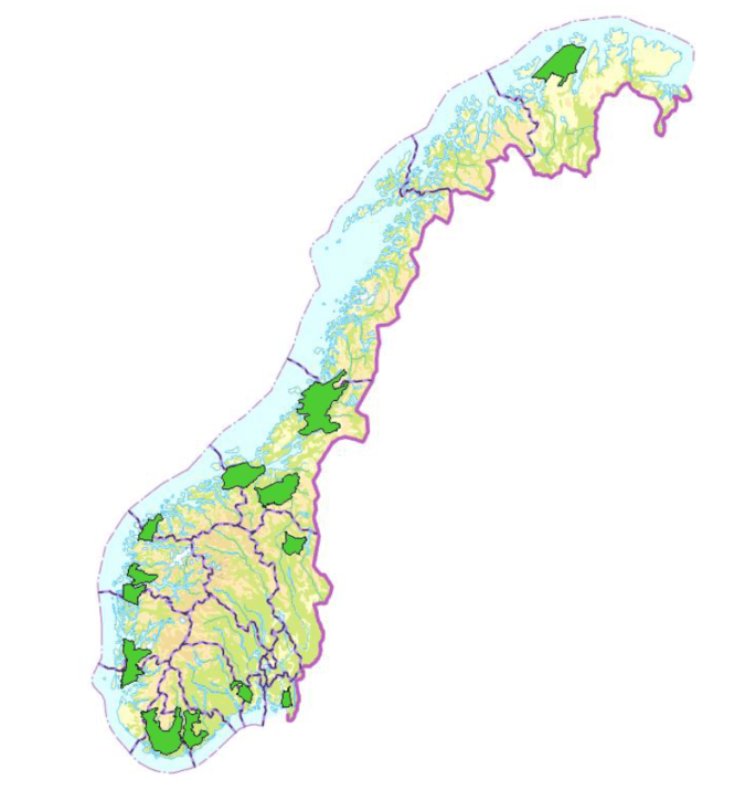 NVE peker i rapporten ut 13 områder som egnet for vindkraftutbygging. Se kart nedenfor.