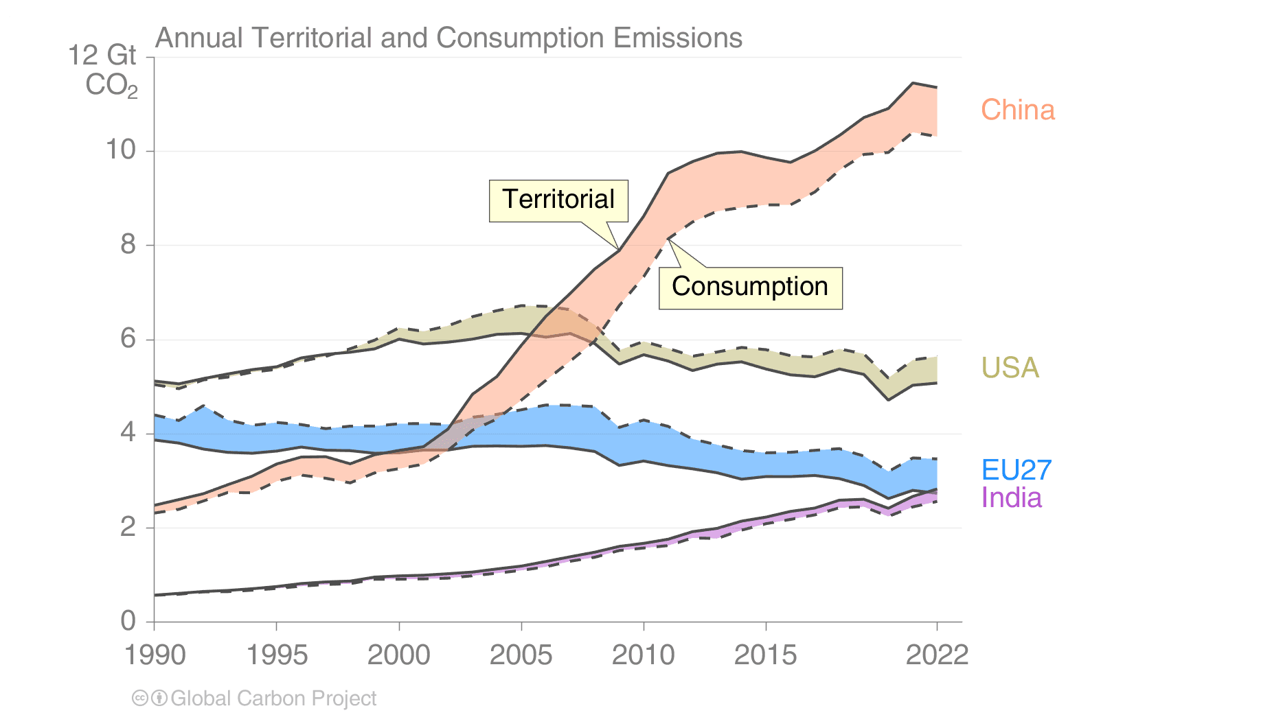 USA sto for 13 prosent, India 8 prosent og EU 6 prosent av utslippene. Til sammen sørget de fire største utslippslandene/regionene for utslipp på drøyt 23 milliarder tonn, 60 prosent av de globale fossile CO2-utslippene i 2025.