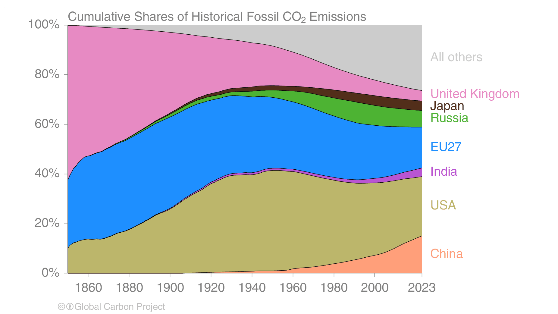 Kina passerte USA som landet med størst utslipp av CO2 fra fossil energi og industri i 2006. I 2025 sto Kina for 32 prosent av utslippene i verden, ifølge en prognose fra forskningsprosjektet Global Carbon Project (se figur).