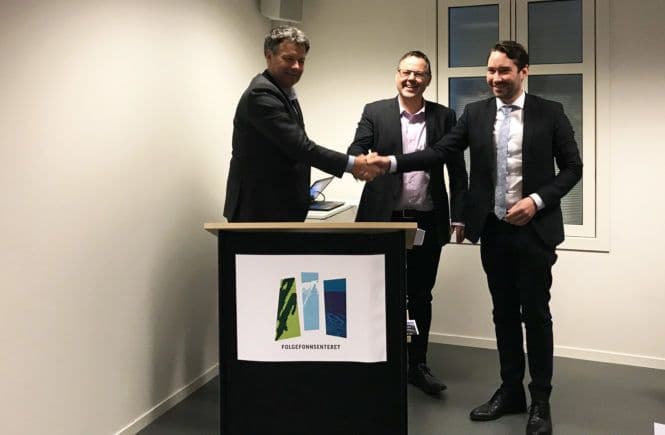 Til stor applaus og med brede smil signerte ordfører i Kvinnherad kommune, Peder Sjo Slettebø, administrerende direktør i kraftselskapet SKL, John Martin Mjånes, og administrerende direktør i Gasnor, Eilef Stange, fredag en samarbeidsavtale om tilrettelegging for mulig hydrogenproduksjon.