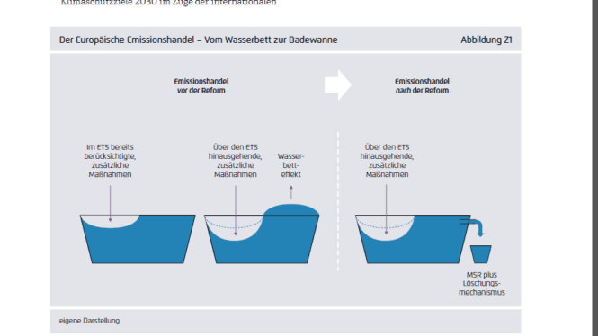 Før denne reformen fungerte kvotemarkedet som en «vannseng». Legger man seg på den ene siden, så skyves bare vannet til side. Akkurat på samme måte vil et kvotemarked i prinsippet fungere: Kuttes det utslipp et sted i systemet, kan utslippene et annet sted økes. Men med reformen av kvotesystemet er dette annerledes. Vannsengen er erstattet av et «badekar med overløp». Legger man seg i et badekar så renner det over. Med reformen i kvotemarkedet så havner overskuddskvoter på et lager, før de senere slettes. Vi har publisert ganske mye om denne ETS-reformen på Energi og Klima. Se for eksempel denne teksten fra Stig Schjølset. På Klimavakten har vi også lenker til mye bakgrunnsinformasjon, i tillegg til oppdaterte prisdata.