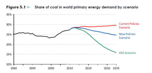 Dette er tilfelle for olje – og naturligvis for kull – men også for gass. Kullets andel i den globale energimiksen vil falle dramatisk hvis klimautviklingen kommer på rett spor.