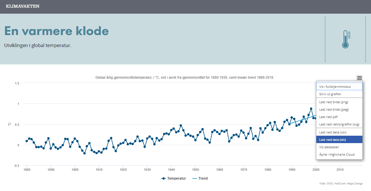 Via grafikken i Klimavakten kan du nå laste ned sentrale klimadata.