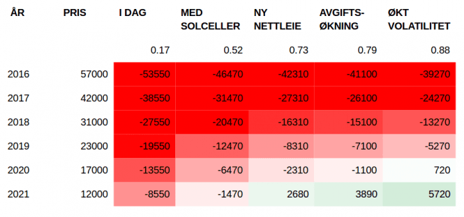 Den vanlige misoppfatningen om at batteriet er egnet til å flytte strøm fra billige sommervilkår til det dyre vinterforbruket stemmer altså ikke. Å tjene en tier på å lagre i et halvt år er langt fra nok til å betale tilbake en investering på over 50.000 kroner.