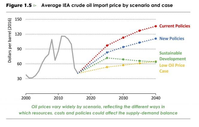 Ein svakheit med IEAs prognosar er at ein forskotterer ei lineær utvikling. Ser ein bakover i tid oppdagar ein at samfunnsutviklinga like gjerne kan bli prega av bråe skift. Ny teknologi stel ikkje berre plassen til den gamle teknologien, men er også i staden til å endre verdikjeder, skape nye forretningsmodellar og etablere nye preferansar og vanar.