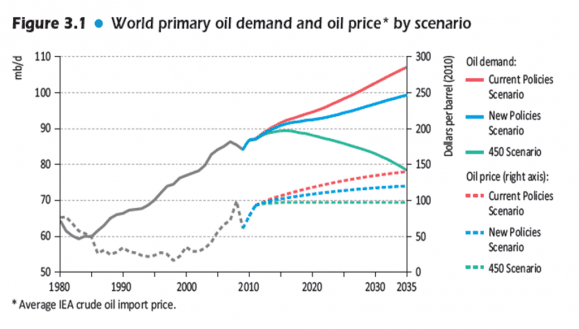 Det er en kjensgjerning at også et lavutslippssamfunn vil ha et visst behov for olje og gass. Men behovet vil være vesentlig lavere enn langs en bane der utslippene tillates å vokse i tråd med en klimautvikling mot 4-5-6 graders oppvarming. Dette synliggjøres for eksempel i IEAs årlige «energy outlooks». Gapet blir for alvor synlig rundt 2020. Da utgjør gapet i oljeetterspørsel mellom en togradersbane og en seksgradersbane nær 10 millioner fat olje om dagen, og dette øker frem mot midten av århundret. I 2035 er gapet nesten 30 millioner fat. Dette tilsvarer den samlede produksjonen i USA, Saudi-Arabia og Russland i 2011.