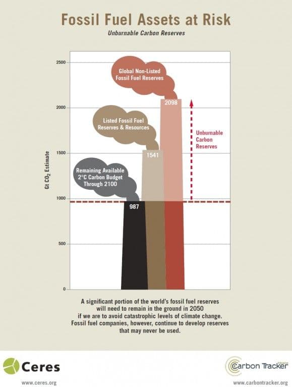 Ifølge rapporten "Unburnable Carbon" investerte de 200 største børsnoterte fossilselskaper i 2012 674 milliarder dollar på å finne og utvikle nye reserver – hvorav en del aldri vil kunne bli utnyttet. Brevet fremhever muligheten til å reallokere denne kapitalen, istedenfor at den kastes bort på å utvikle karbonressurser som ikke vil kunne utnyttes.