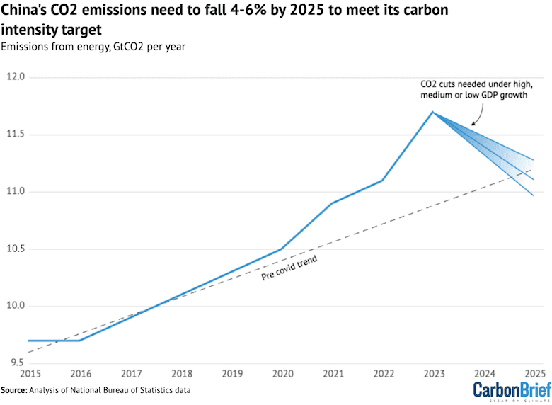 Et av Kinas løfter under Parisavtalen er at landets utslipp skal nå toppen før 2030. Det er trolig at denne toppen vil bli nådd før 2025, ifølge Lauri Myllyvirta, sjefsanalytiker i Centre for Research on Energy and Clean Air (CREA). Han har skrevet teksten i Carbon Brief, basert på offisielle kinesiske data.