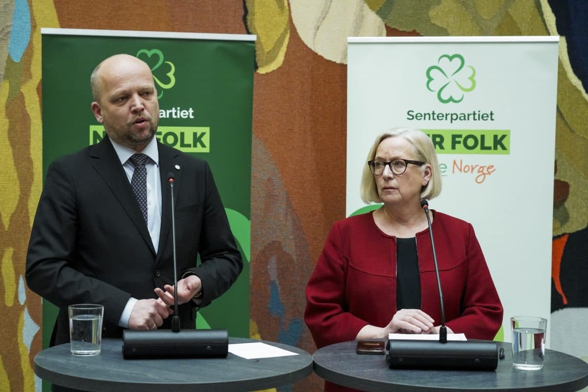 Trygve Slagsvold Vedum og Marit Arnstad sier takk for seg i regjeringssamarbeidet med Ap. Det vil gjøre det lettere å lage gode rammer rundt den langsiktige klimapolitikken i Norge. (Håkon Mosvold Larsen / NTB)