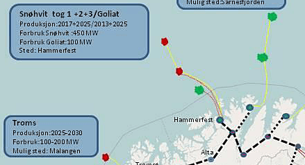 Hvem og hva er i hovedsak tiltenkt å ta i bruk mesteparten av kapasiteten i Ofoten-Hammerfest-nettet? Hvem dekker kostnaden med dagens regelverk? Hva vil tiltakskostnaden for elektrifisering av Snøhvit bli hvis de fikk seg forelagt kostnaden for kapasiteten i Ofoten-Hammerfest som de er helt avhengige av for å realisere prosjektet? Det samme går for Utsiragrunnen og andre elektrifiseringsprosjekter på beddingen.