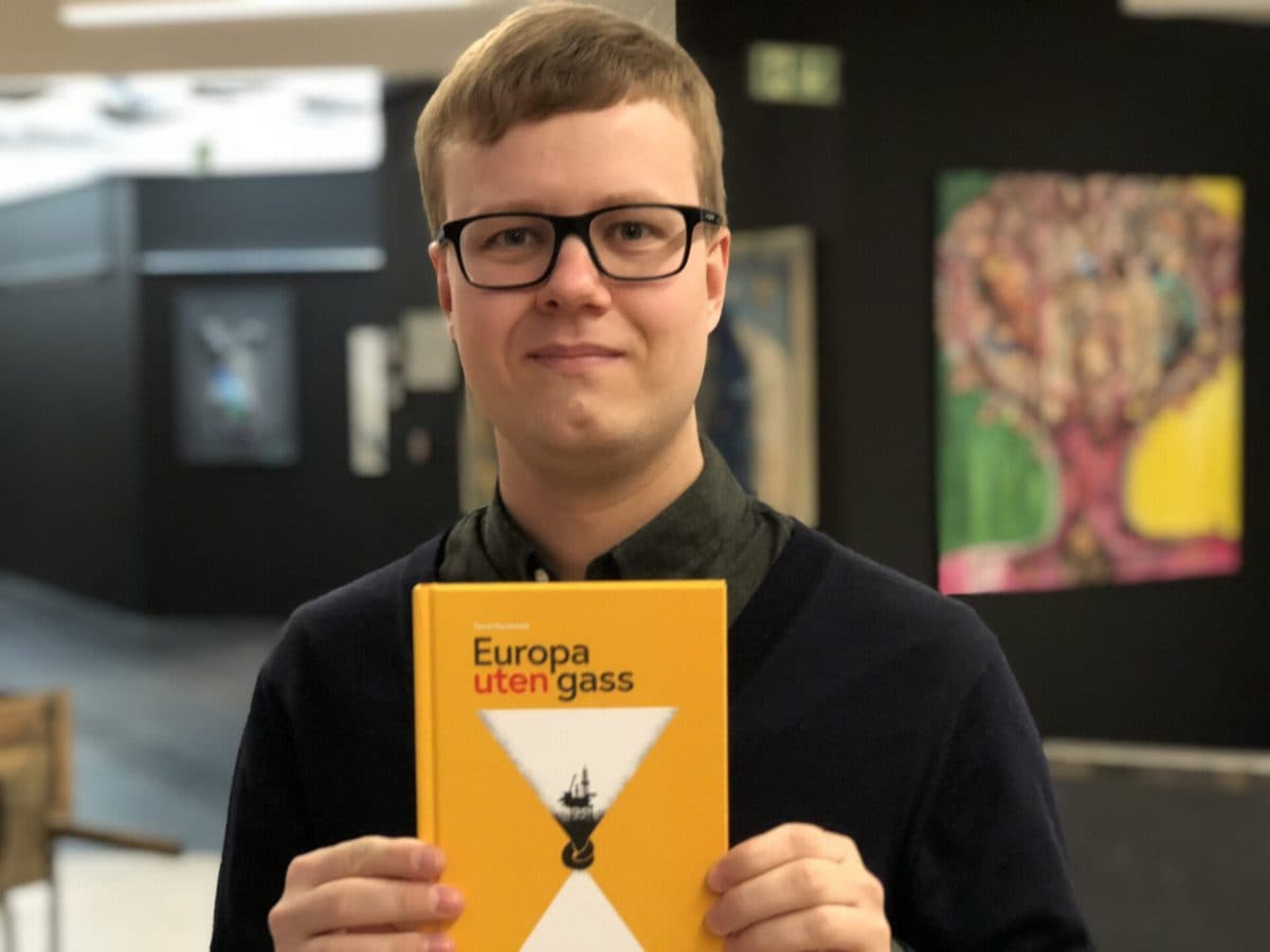 Tord Hustveit med si nye bok «Europa uten gass: er norsk gass broen til nullutslippssamfunnet?», som ble lansert 18. oktober. Foto: Energi og klima