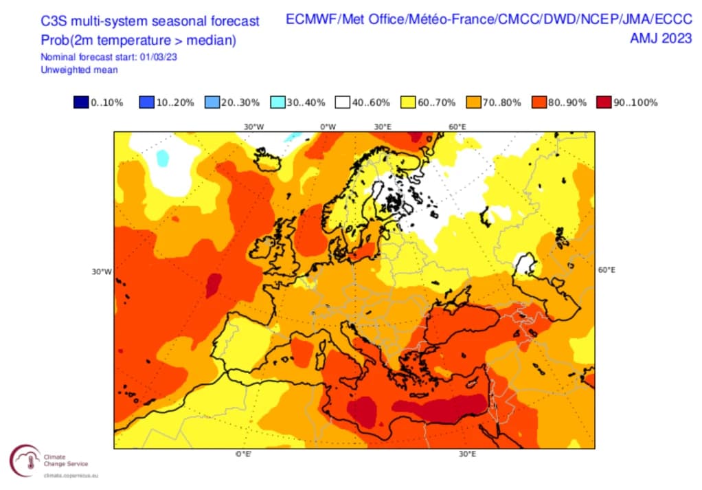 Kulden ser altså ut til å slippe taket etter hvert. Det er mellom 60 og 70 prosent sannsynlig at perioden fra april til juni blir varmere enn normalt.