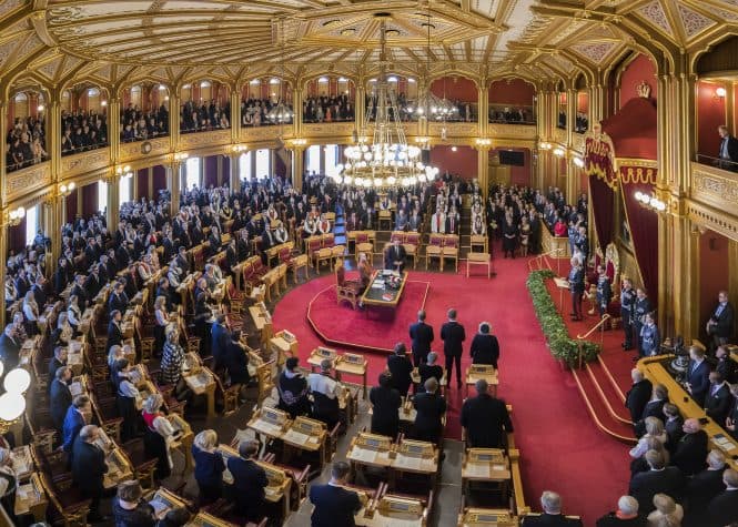 Stortinget har stort handlingsrom om man ønsker å føre klimapolitikk i den norske oljesektoren, skriver Anne Karin Sæther. Bildet er fra trontalen under Stortingets høytidelige åpning 9. oktober 2017. (Foto: Hans Kristian Thorbjørnsen/Stortinget)