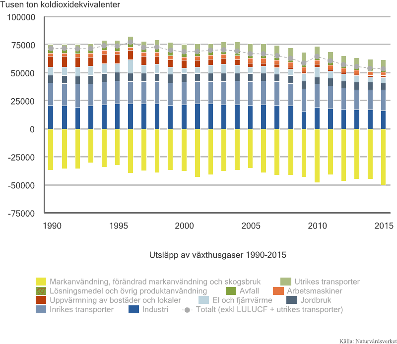 Statistikken det ble referert til, viser de direkte klimagassutslipp fra norsk territorium, og basisåret (1990) ble i sin tid valgt av FN. I dette året var de direkte utslippene fra svensk territorium drøye 71 millioner tonn CO₂-ekvivalenter. Til sammenligning var de norske utslippene drøye 51 millioner.