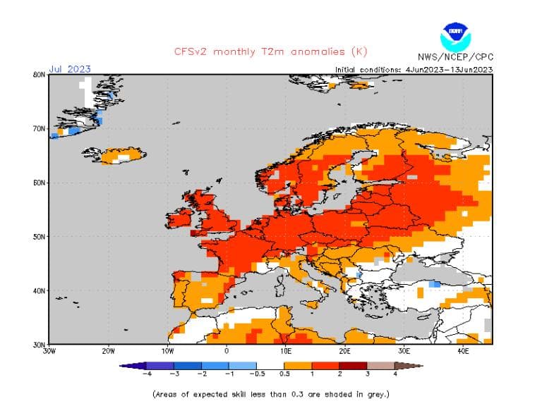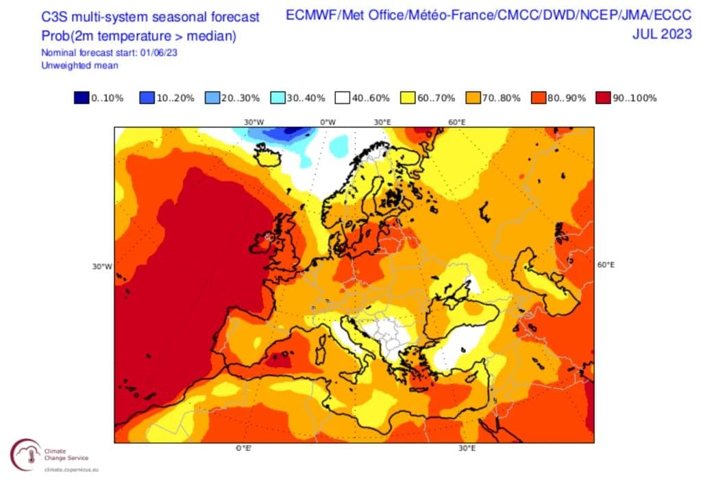 Sesongvarslene for resten av sommeren er klare, og her er en oppdatering for juli. Som alltid oppfordrer jeg til å se på siden vår om hvordan vi lager varsler. Der står det blant annet at sesongvarsler produseres en gang i måneden, og vi får som regel tilgang til disse rundt 12. i hver måned. Denne gangen bruker jeg et kombinert varsel som er produsert av EU sin Copernicus-tjeneste. Her er en lenke til alle varslene.