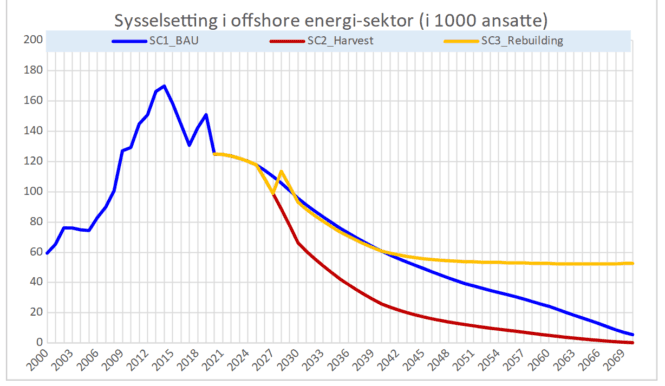 I et forskningsprosjekt med BI og SSB har vi analysert virkningene av ulike investeringsprofiler på fremtidig sysselsetting i offshore energinæringer, eksport av energiprodukter, velferd målt som bruttonasjonalprodukt (BNP) per innbygger, Oljefondet samt klimautslipp.