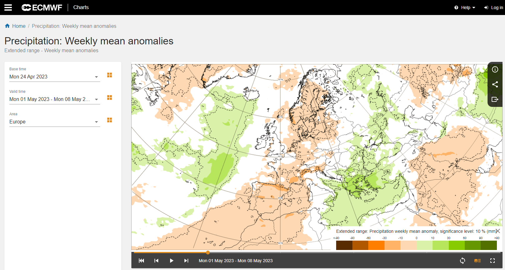 Enheten er millimeter nedbør i løpet av hele uken. En ting man skal være klar over når man tolker slike kart, er at de normale nedbørsmengdene på Vestlandet er høyere enn på Østlandet.