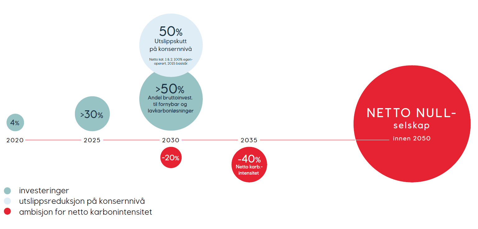 - Allokere mer enn halvparten av årlige bruttoinvesteringer til fornybar energi og lavkarbonløsninger innen 2030.