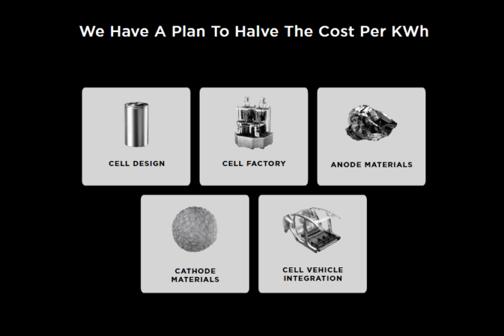 Det er ulike oppfatninger om hva kostnadene ved batteriproduksjon er for Tesla i dag, men det er bred enighet om at en kostnadsreduksjon på 56 prosent vil bringe kostnadene langt under den magiske grensen på $100/kWh. Ved dette kostnadsnivået antar analytikere at produksjonskostnader for elbiler med rekkevidde på 30–50 mil vil bli på nivå med sammenliknbare bensin- og dieselbiler.