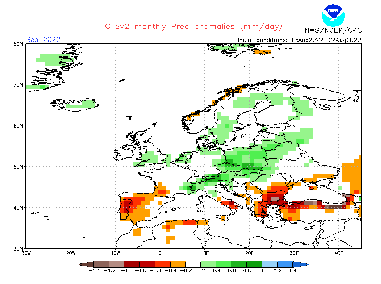 Men, det finnes et nyere varsel fra den amerikanske modellen CFSv2. Den inngår ikke blant de 293 varslene vi bruker i vår statistiske modell, og de nyeste varslene med CFSv2 er basert på tilstanden frem til og med 22. august: