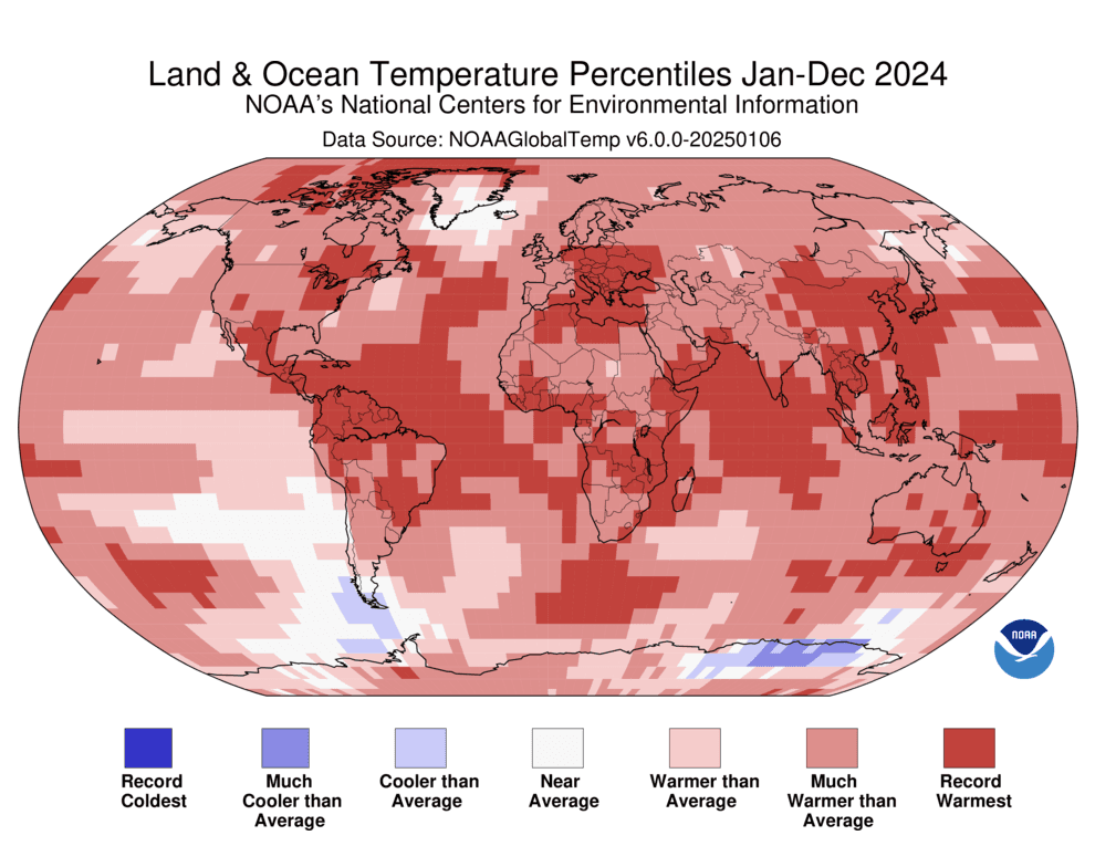 Ser en på verdensdeler og regioner, hadde Afrika, Europa, Nord-Amerika, Oseania og Sør-Amerika (likt med 2023) sitt varmeste år noensinne i 2024. Asia og Arktis hadde det nest varmeste året, melder NOAA.