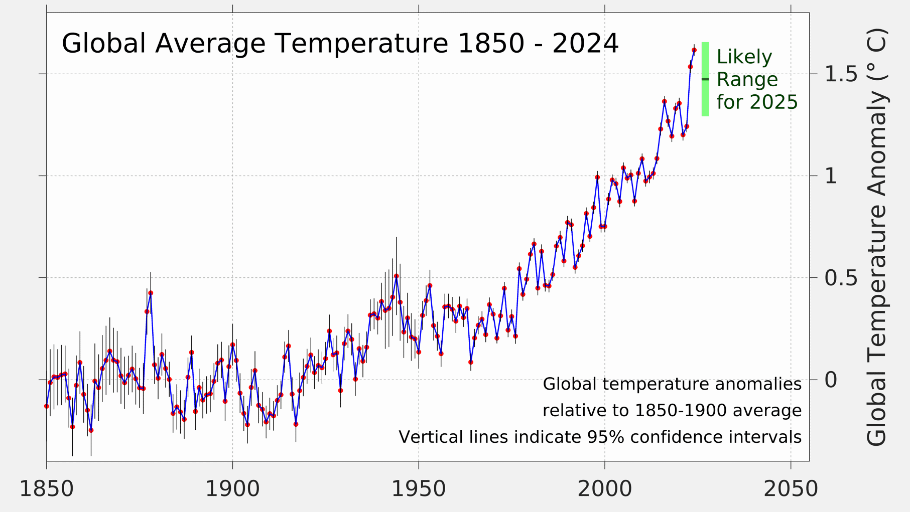 I 2024 var oppvarmingen over 1,5 grader i tre av de fem datasettene. Dette betyr likevel ikke et brudd med Parisavtalen. Oppvarmingen må være over 1,5 grader i gjennomsnitt over en lengre tidsperiode før målet vil være passert.