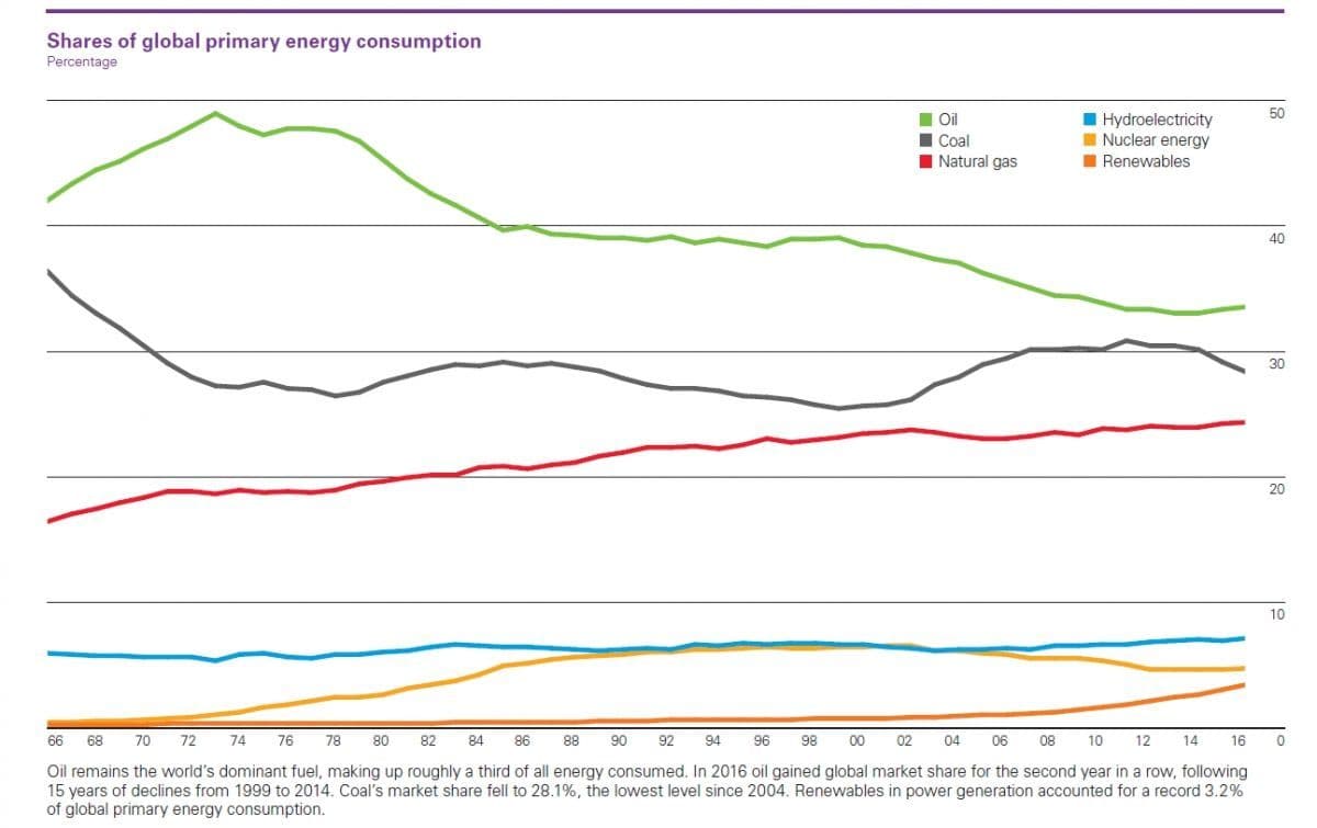 Oljeselskapet BP har levert 2017-utgaven av sin årlige rapport Statistical Review of World Energy. Hovedtrendene i materialet: