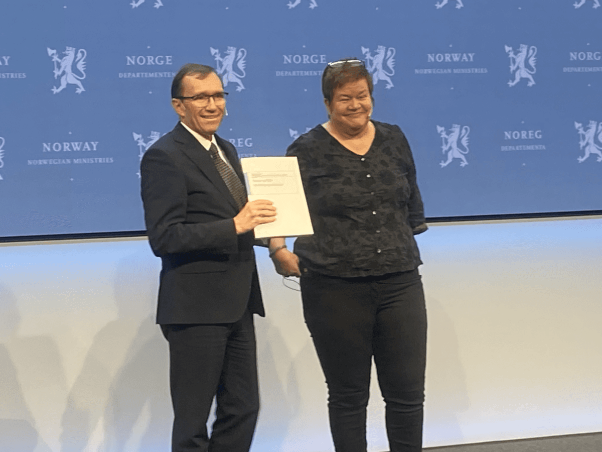 Utvalgsleder Line Eldring overleverte utvalgets innstilling til utenriksminister Espen Barth Eide. Foto: Alf Ole Ask
